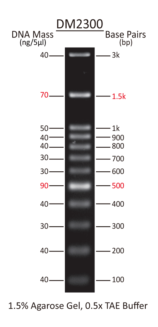 100 - 3,000 bp Ready-to-use DNA Ladder with Pre-mixed Loading Dye and sharp bands, 12 Bands, Each