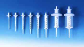 Wide variety of volumes between 1 µl and 5,000 µl are available. Works with the Labpette R Repeating Pipette. Repetitive Tips are available sterile or non-sterile, supplied in sturdy, stackable dispenser boxes (100/box)